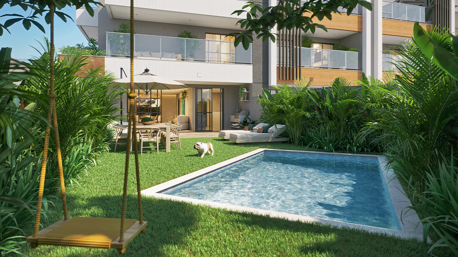 Opções de área externa privativa com garden e lazer